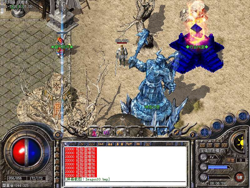 本服务器新区首次拿沙奖励城主8888888元宝!老区拿沙5000000元宝,沙奖励请在22点01分-22点20分之内进入沙奖励室获取奖励证明兑换攻沙元宝奖励。