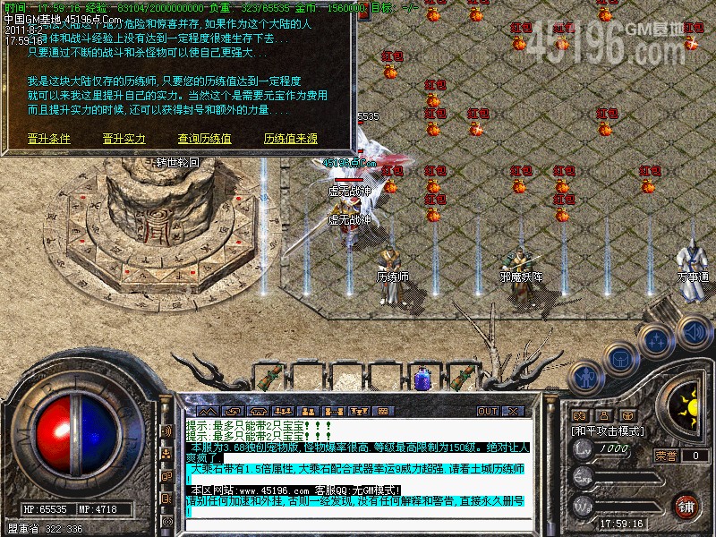 转生系统:转生系统非常强大,先去打小怪收集大量的历练值(带上历练圣石收集更快)