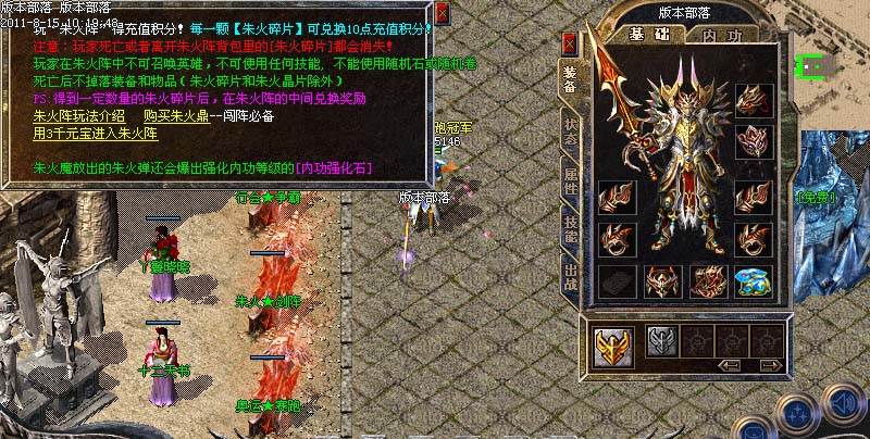 添加朱火阵,在里面可获得内功强化石,提高强化内功技能等级