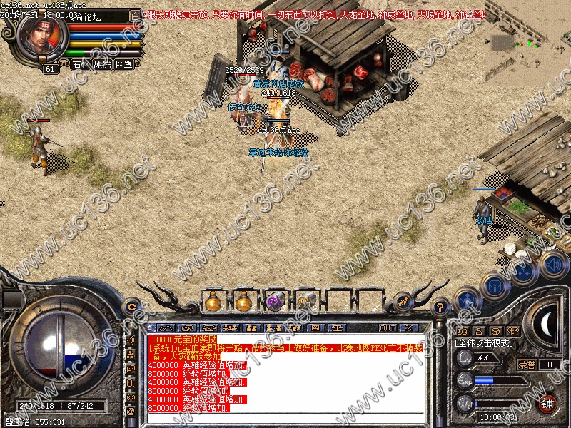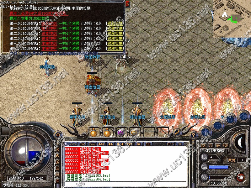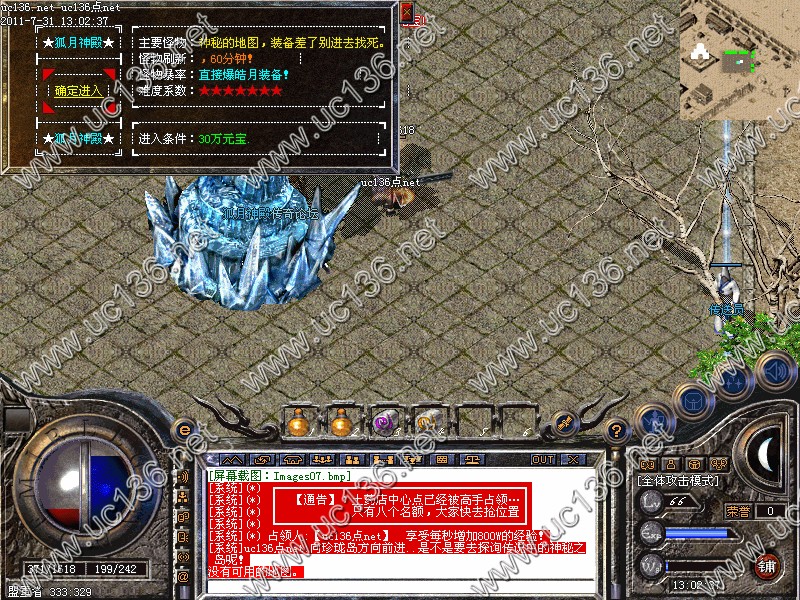 特别说明:本F新区自开区到第3天晚20点整进行首次攻城,首次沙城主奖励元宝2000W元宝,老区天天拿沙奖励888W元宝!