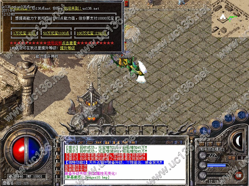 装备回收:本服所有装备都可以回收经验和元宝.让没用的装备也有它的价值.深受玩家之喜好.