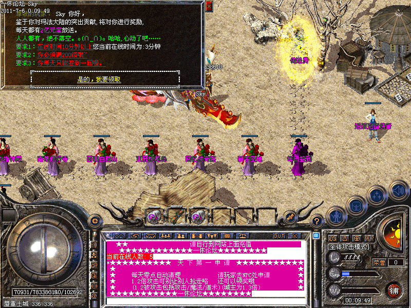 【怪物攻城】:每100分钟举行一次怪物攻城在风魔大量强化教主出现。