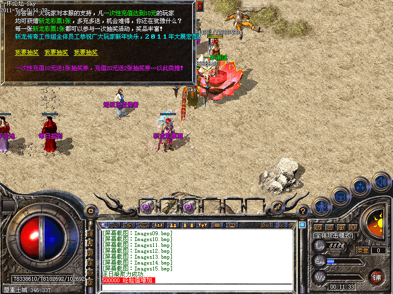 【攻沙奖励】:开区第二天,集体抢沙,奖励元宝200000亿