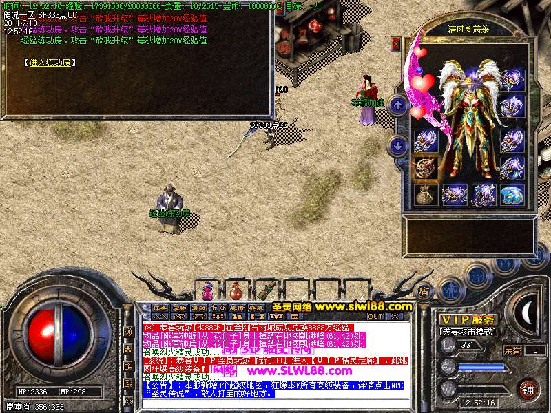 【公告】:激情闭关打宝地图是个很不错的地方,打怪的同时享受每秒100万经验,怪物好打,偶尔可以爆出:灭世,地裂,甚至是弑神装备。