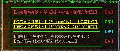 【版本特色】 为了防止打装备练级枯燥,还增加大量活动,奖励大量经验与元宝
