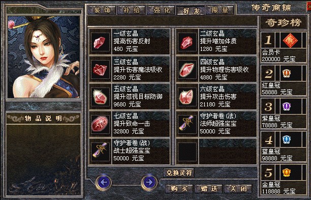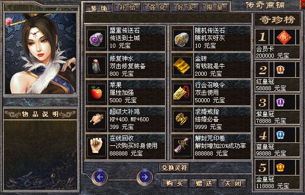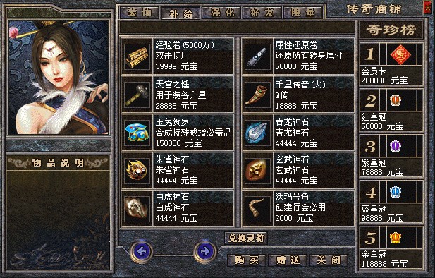 【注意】本服推出金刚石系统,每冲值1元人民币元宝将获得10个金刚石,金刚石可在土城金刚石使者处兑换装备和物品