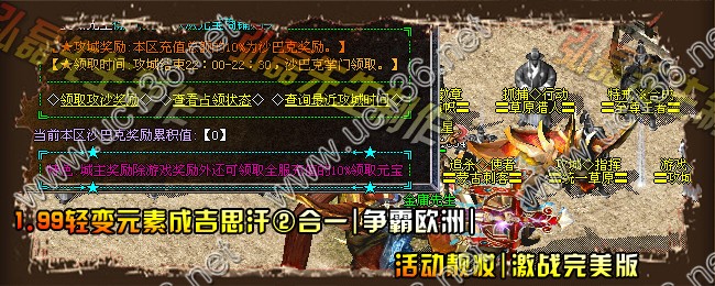 【攻城累计:】新区开放2日后攻城.攻城结束城主可领取全服充值元宝10%的奖励.