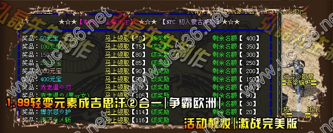 【攻城奖励:】新区开放2日后攻城.领取新区奖励5W颗元宝.老区奖励2W颗元宝...