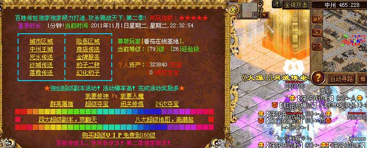 装备狂暴!元宝好打!无论你是人民币还是非人民币都可以打到装备!只有用心去玩非人民币玩家一样牛逼!