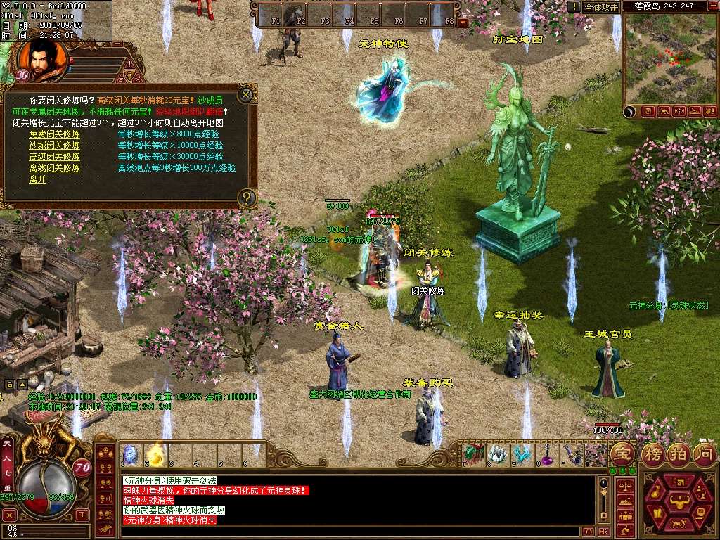 新手介绍:新手初始等级40级,上线即可领取元神,然后点老兵的练级传送进入新手练级区,可以让你迅速升级,你也可以