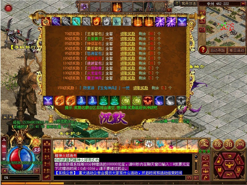 游戏助手:每个BOOS都有爆金玉,金玉可以换取游戏点数,游戏点数可以换特殊和三打武器三大衣服
