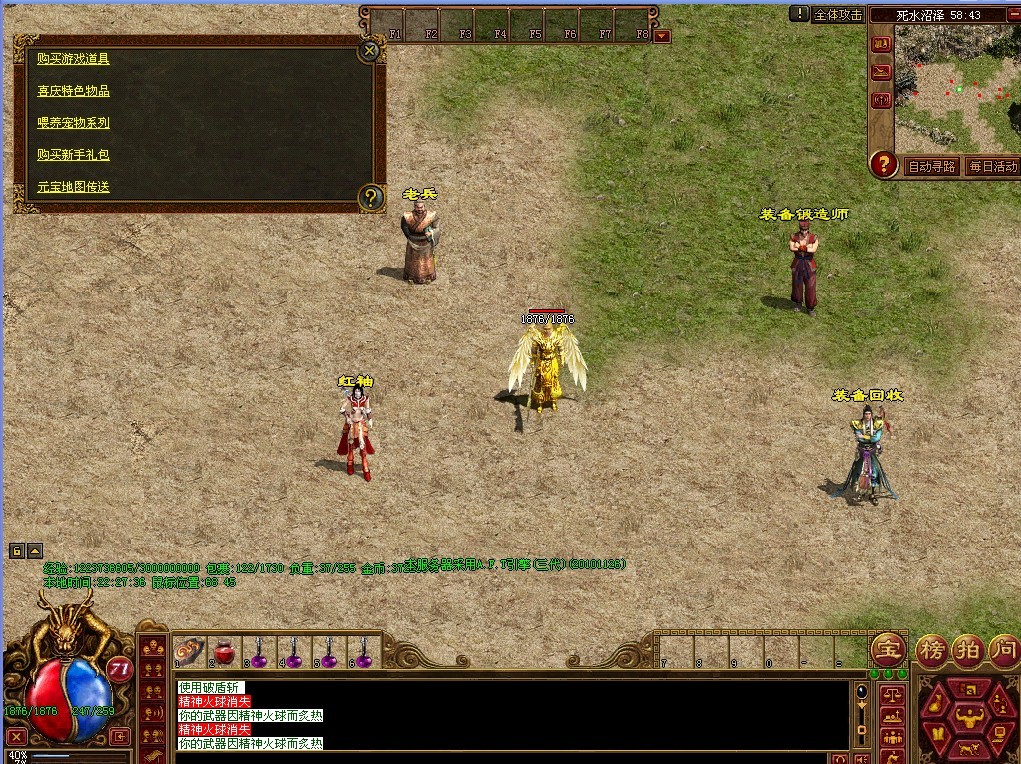 10:装备炼制功能也很强大精炼钢一块+金砖一块就可以为你心爱的装备增加