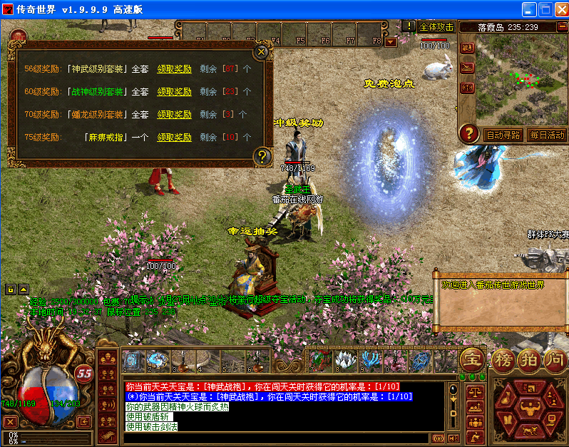 本游戏最新特色:每天4次夺宝决不出一样垃圾,每周三,六随机出元宝(改为最少3000-5000),加海底世界,免费泡点,值班GM,天魔最底层以及黑暗底层等爆点爆率,适合长期玩家玩!(系统每天夺宝时间:9:30,1:30,19:30,23:00)