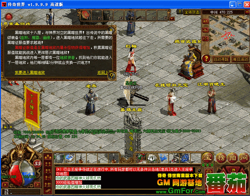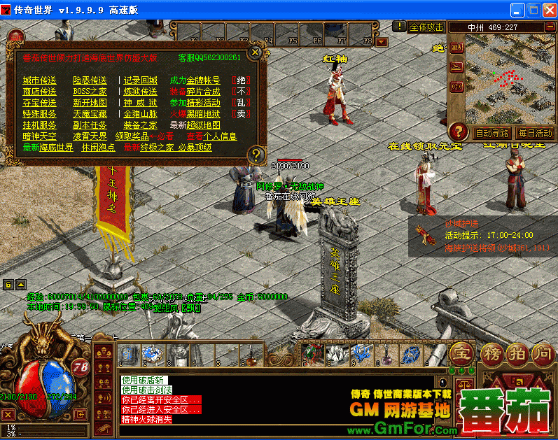 3,每天举行屠杀GM活动,必爆大量元宝,大量经验卷,出蟠龙衣服几率极高
