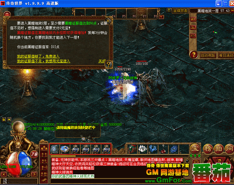 1,单身乐园,暗神天空,黑暗地狱小怪出神武,战神级,有几率出一亿经验卷
