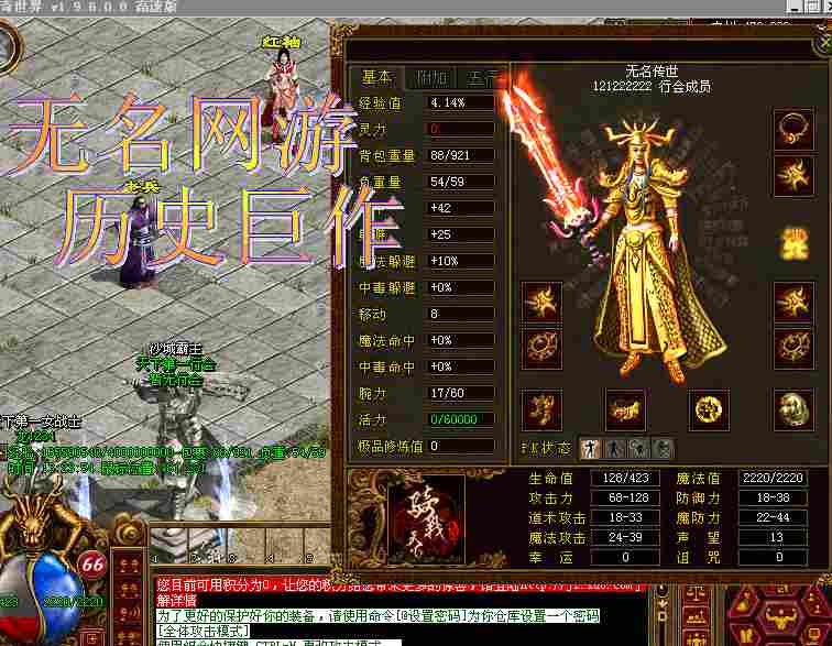 声明:本版本是无名网游全体技术员开发了半个月的版本,版权所有,最终解释权归无名所有(工作QQ 512876156 电话 13955543972没事勿扰)