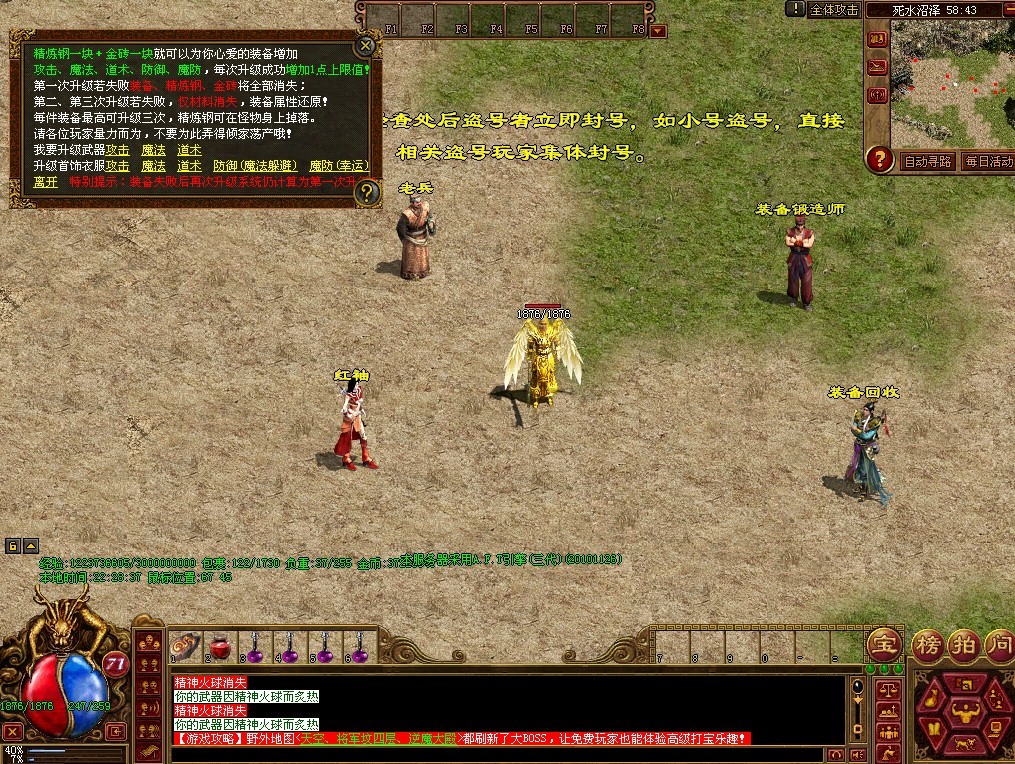 10:装备炼制功能也很强大精炼钢一块+金砖一块就可以为你心爱的装备增加