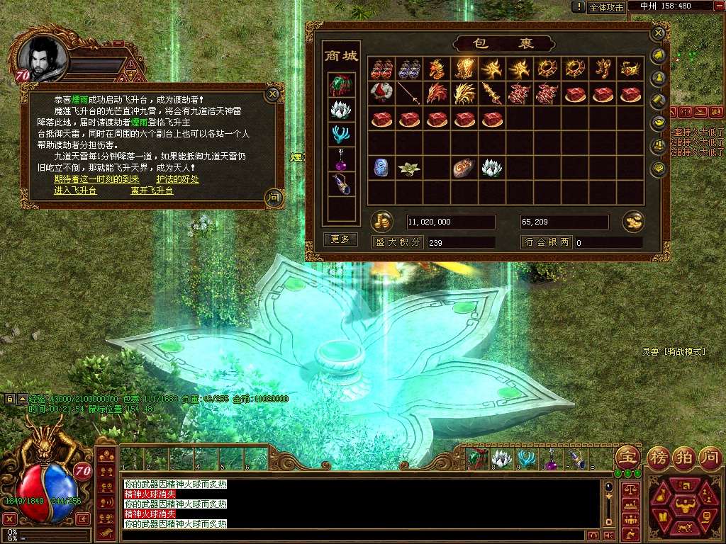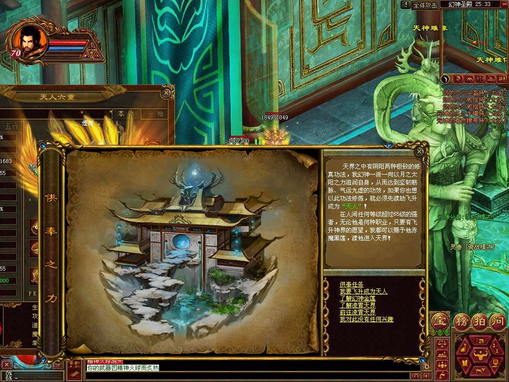 14 增加一个新地图-单身天堂 免费进入,大厅刷殿堂守护神 暴第二元神修炼用的修炼令牌 其余六层各 刷大小BOSS,经验丰富。免费玩家的新乐园