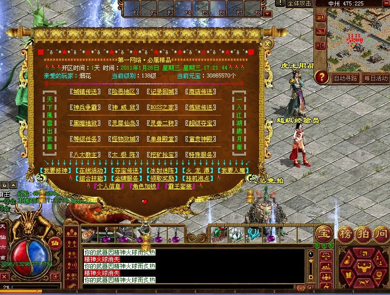 装备回收系统:可以在中州装备回收炉处回收装备成元宝、经验、极品修炼值。