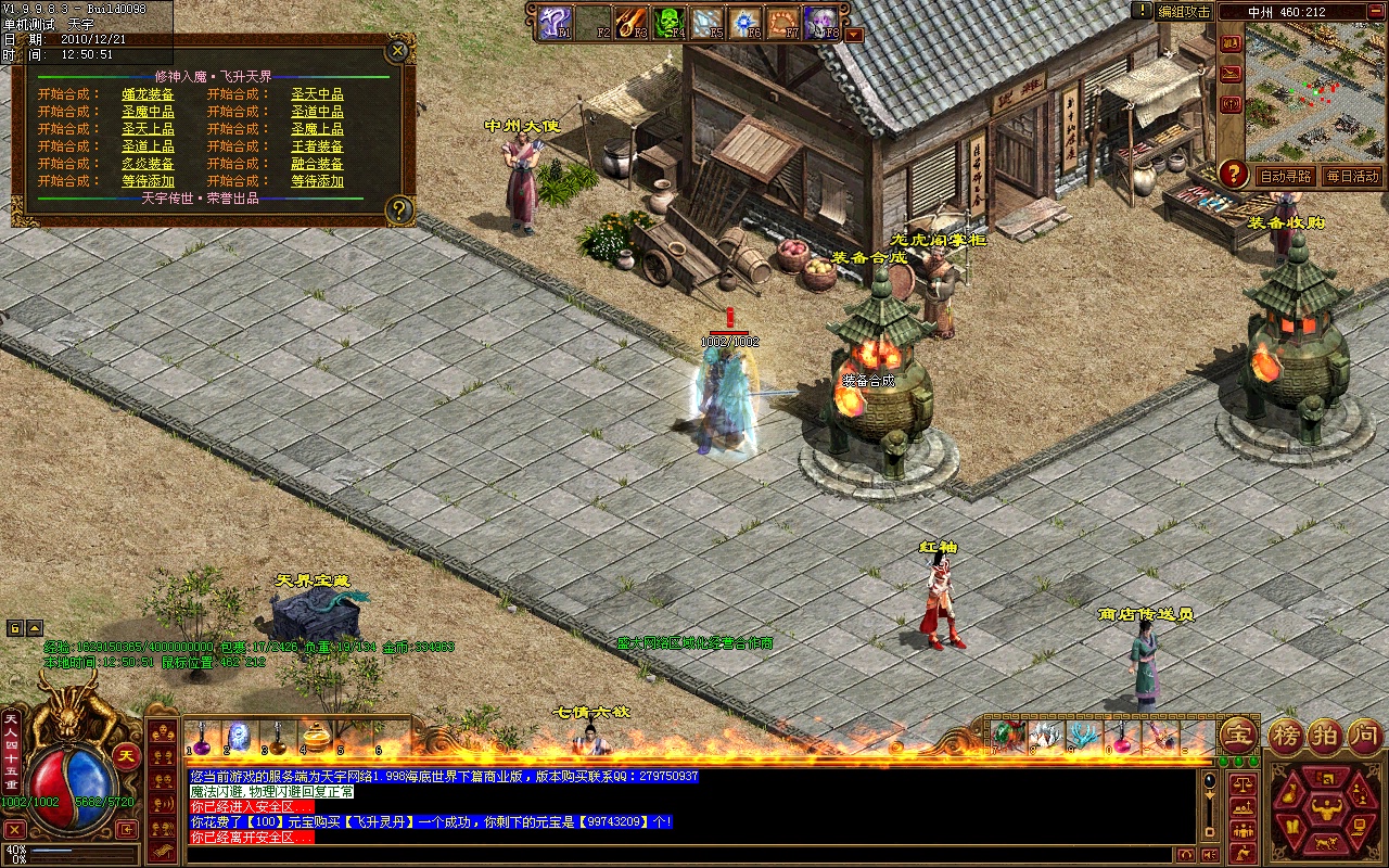 装备回收系统:可以在中州装备回收炉处回收装备成元宝、经验、极品修炼值。