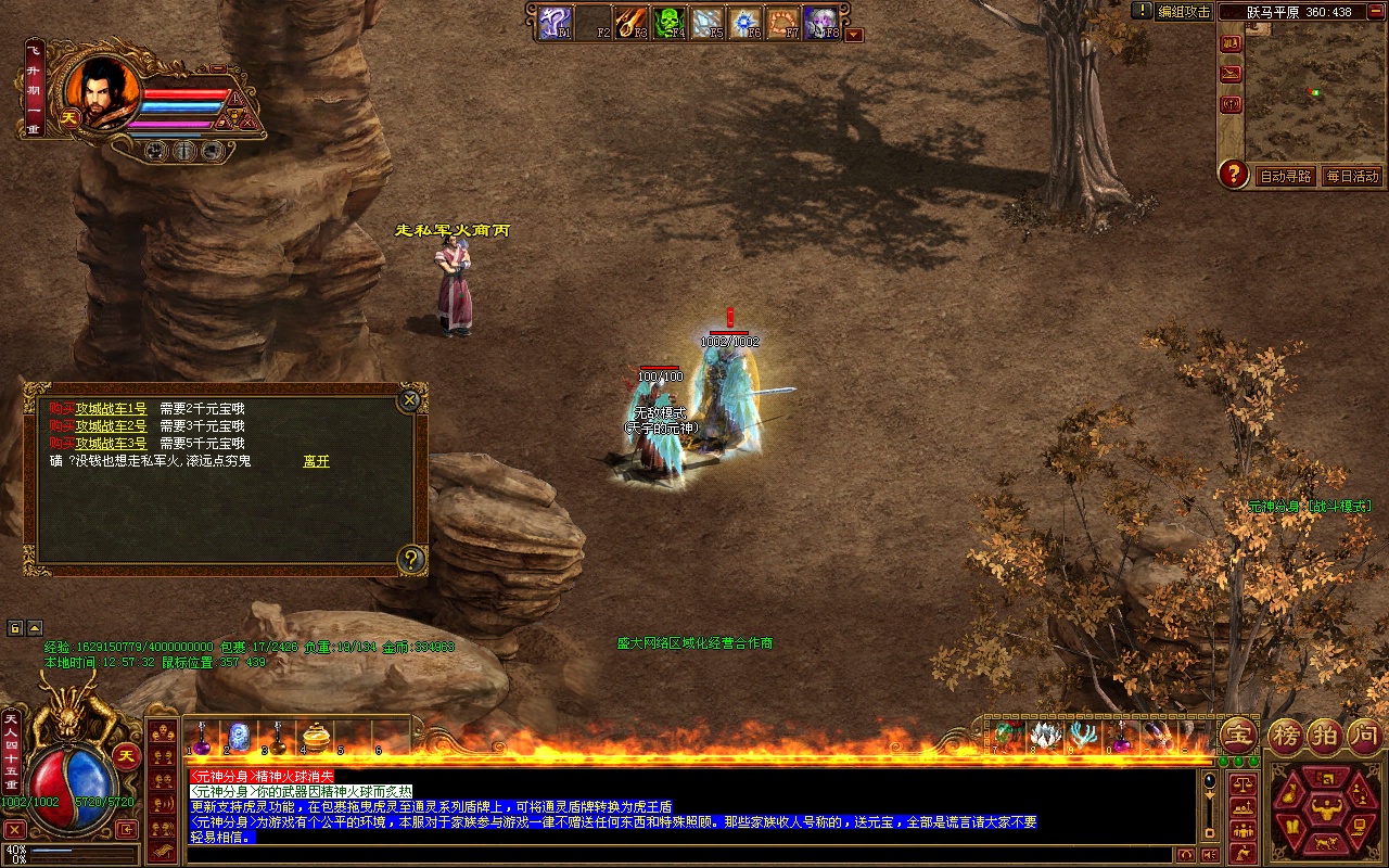 初级打宝:再去天空打神武系列,凌霄天界打战神以上装备,请不要过早去高级地图否则浪费时间