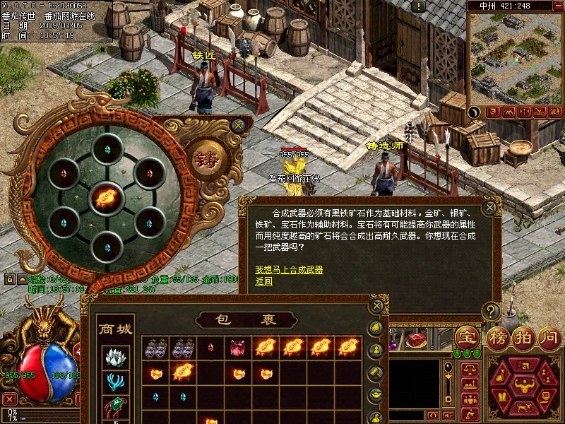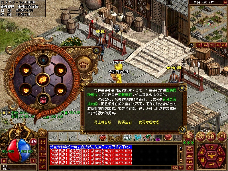 完美实现盛大一样的熔炼宝箱系统,锻造武器系统,合成碎片系统;