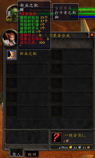 装备合成系统:可以限制需要材料的数量,需要积分,会员级别,成功几率等