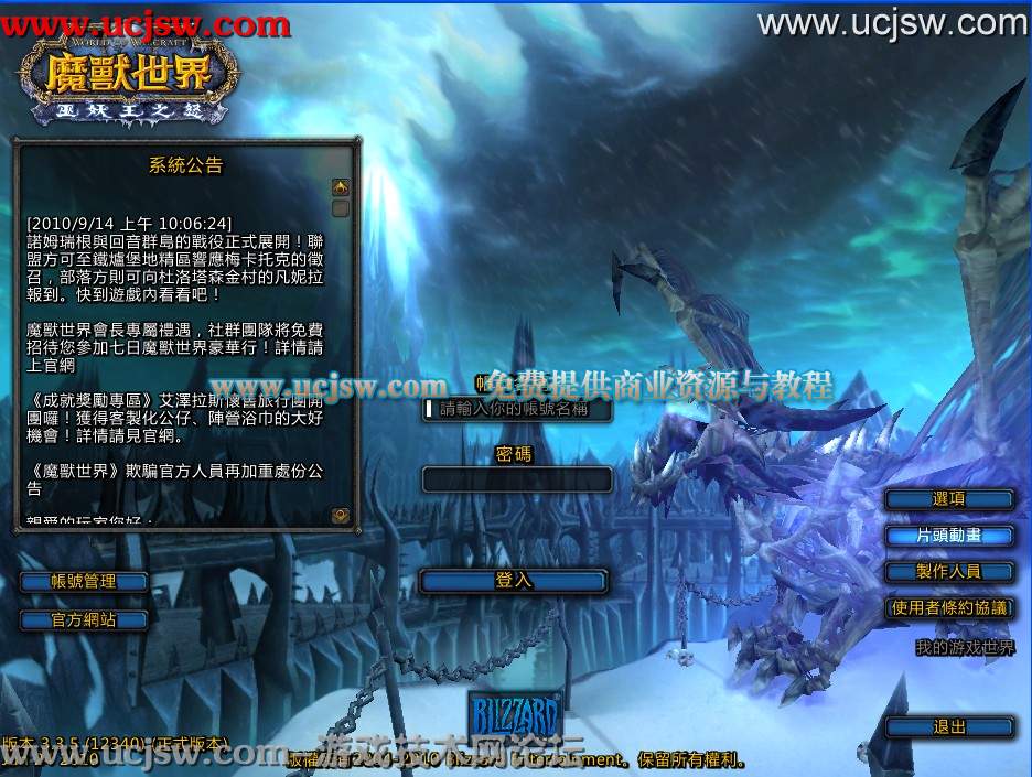 好,我们进入游戏 大家看左下角的版本号 3.3.5 12340 哦 一定要对版哦!!