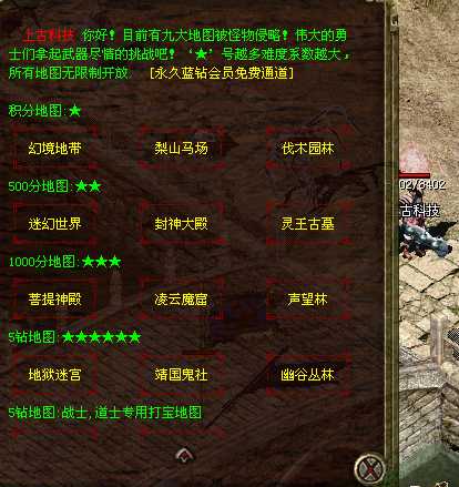 【亮点三】 分等级分层次的升级地图设置:各职业初中期可以在原1.45版常规地图升级,级高后可以去西沙.神舰.绝情.冰宫等地图练级