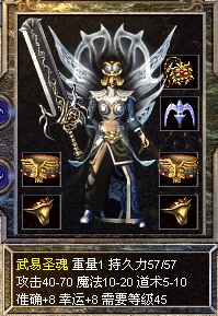 武器 武易圣魂 攻击40-70魔10-20道5-10准确+8 幸运+8 170 45
