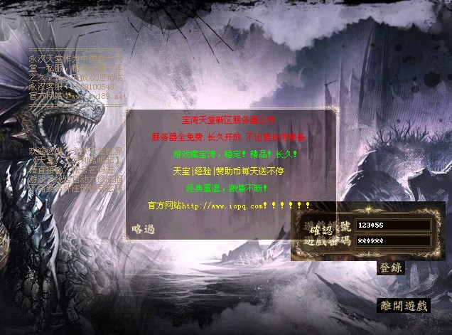 有打宝地图和武器装备升级系统,武器装备也有租凭系统!!!终极武器自带魔法黑暗流星雨和究极光烈!!!