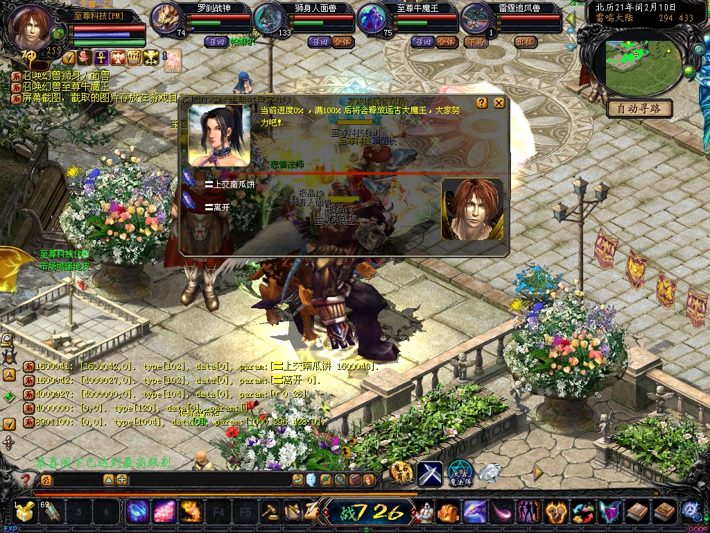 当上交的南瓜饼达到一定数量,会刷一只终极BOSS(远古大魔王)在雷鸣杂货店旁边(296.408)处,暴本服所有贵重物品,暴率可观!