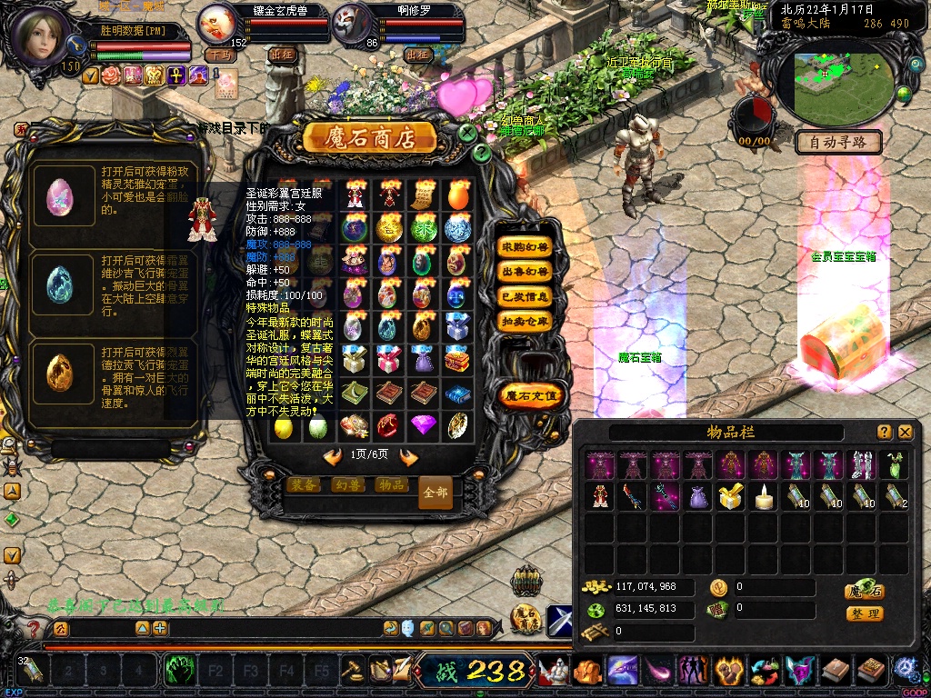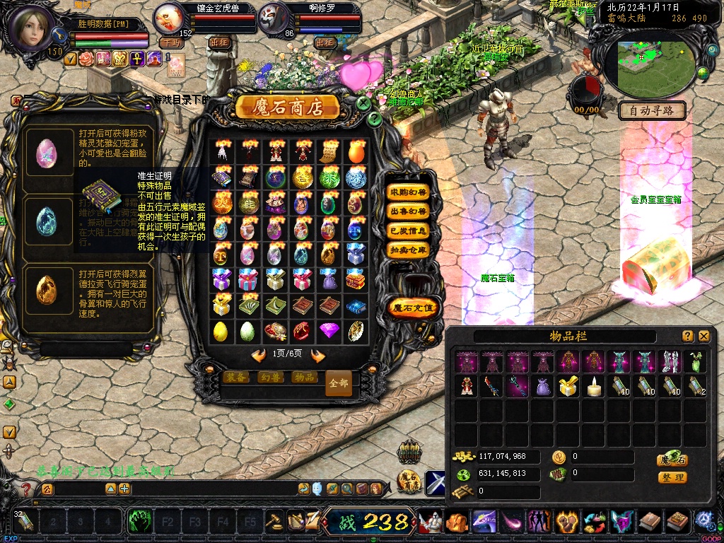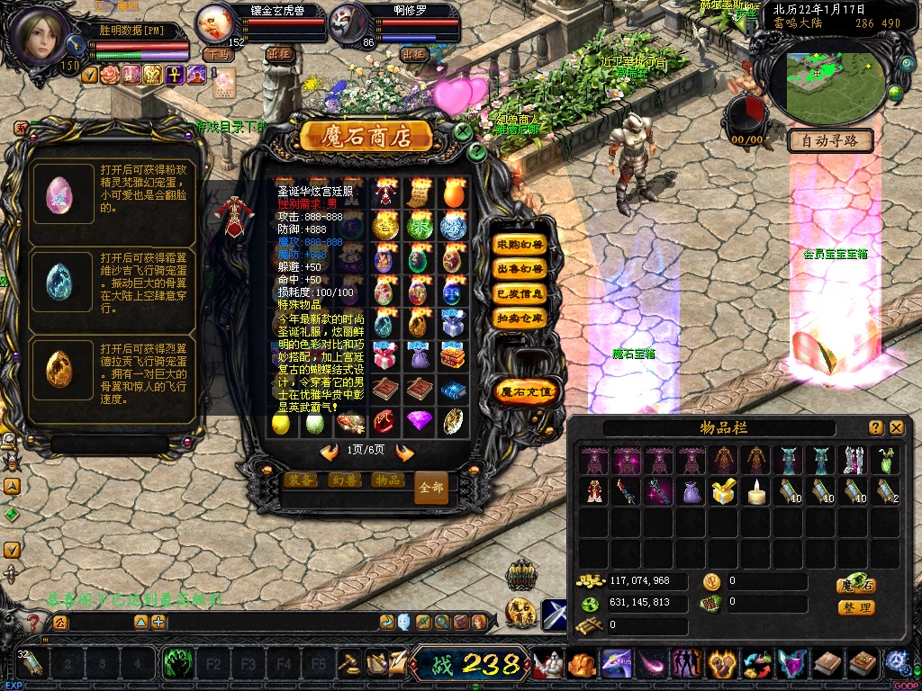 7. BOSS自动入包魔石,全地图的BOSS杀死一只入包10W魔石并爆大量副宠及270点卡、2700点卡等。