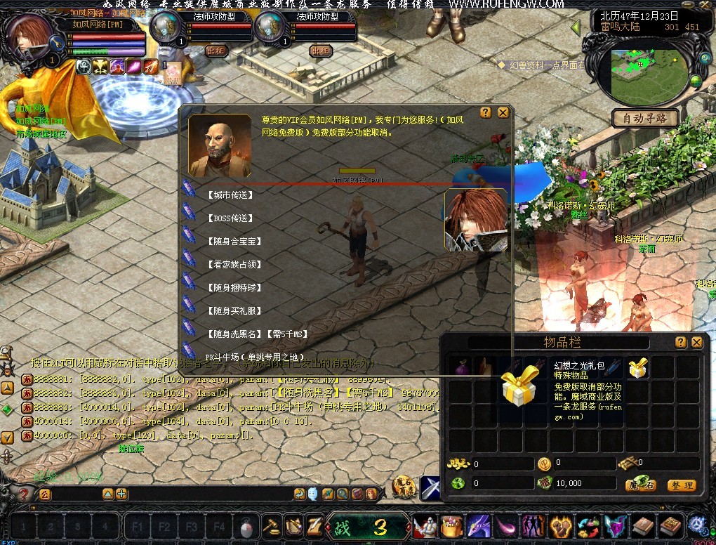 4、三职互转.可随意领取三职业终极装备,方便转职后换,神力球升BB到255,随身NPC购买会员BB进化300*