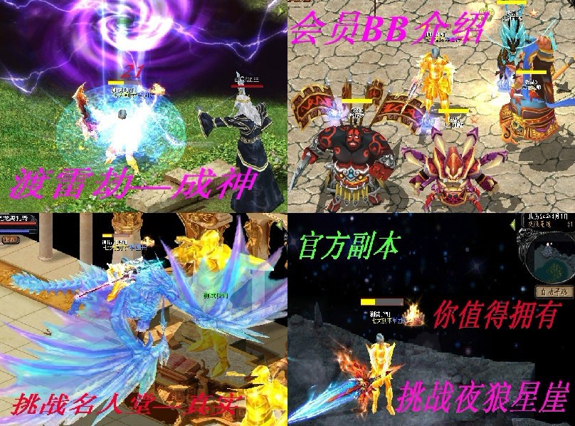 7、渡劫成神介绍:与官方一样难度大、失败后重新进入、成功奖励+30装备一套。
