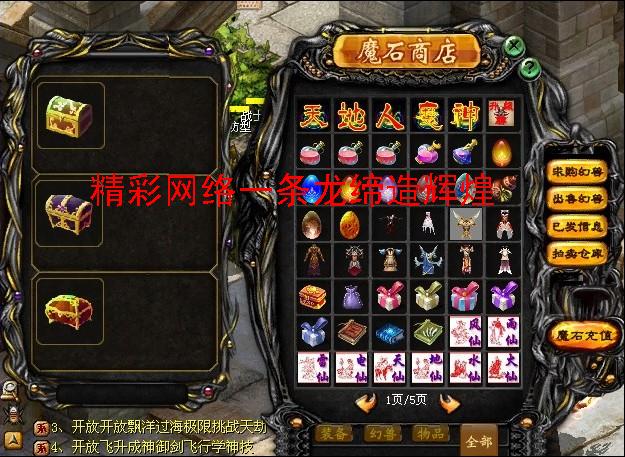 2:小怪爆财神卡,迷宫狂爆,打开获得1到50万魔石,有一顶机会进入财神地图打财神,杀死财神获得100万MS,升级卷,八仙召唤卷
