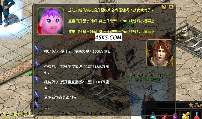 [神力经验球]在游戏中点【随身NPC】购买 可让你的宝宝极速上升到255级!