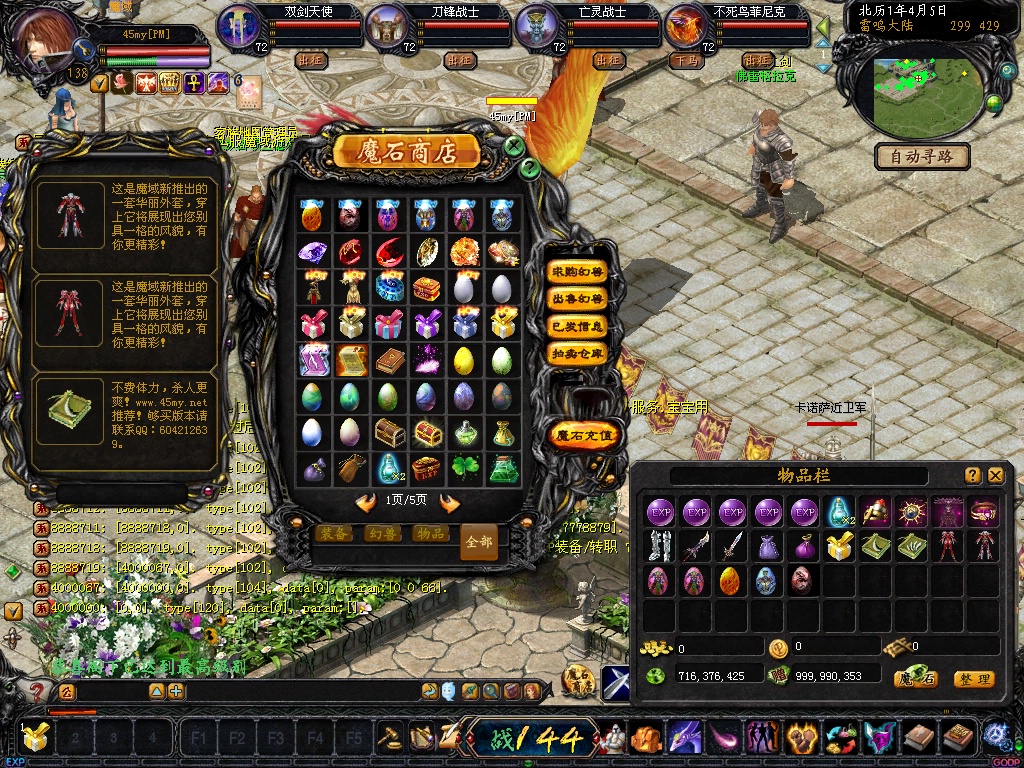 上线10亿MS +150装备 送138级 VIP5 每怪自动进包300点