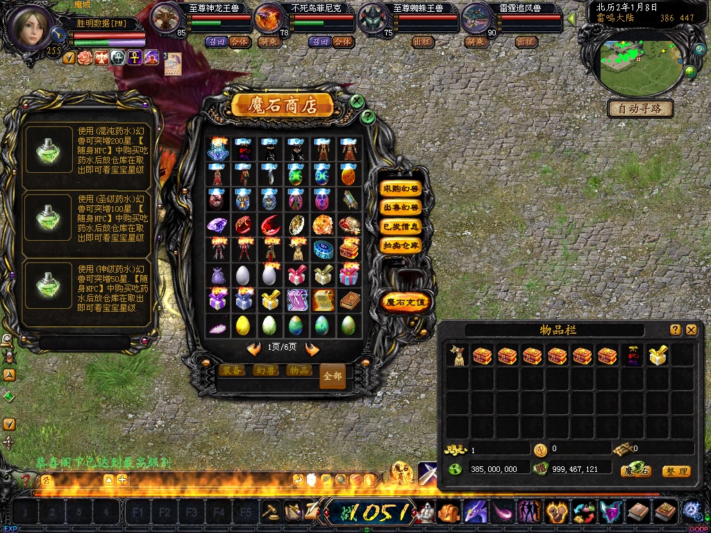 爆率:普通怪爆(魔石袋 灵魂王 幻魔之心 魔魂之心 特制经验求礼包(单个) 魔石卡270)