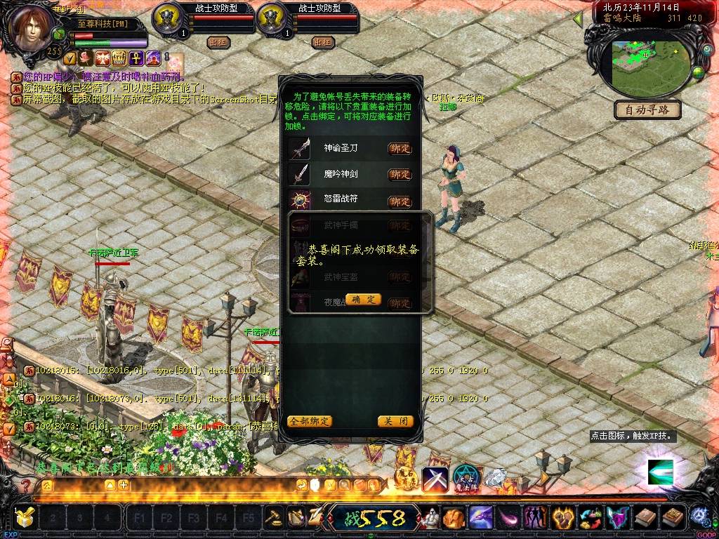 7、冲值满50奖超强全属性装备(风火地雷)四大属性+255另-再送全属性+255的外套.外套可以带上攻击宝石或减伤害宝石-随身NPC上领