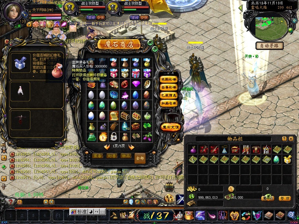 4. 魔石商店出售 所有职业装备礼包 打开全是 +12双洞 战魂+8的装备 血族的也有哦!