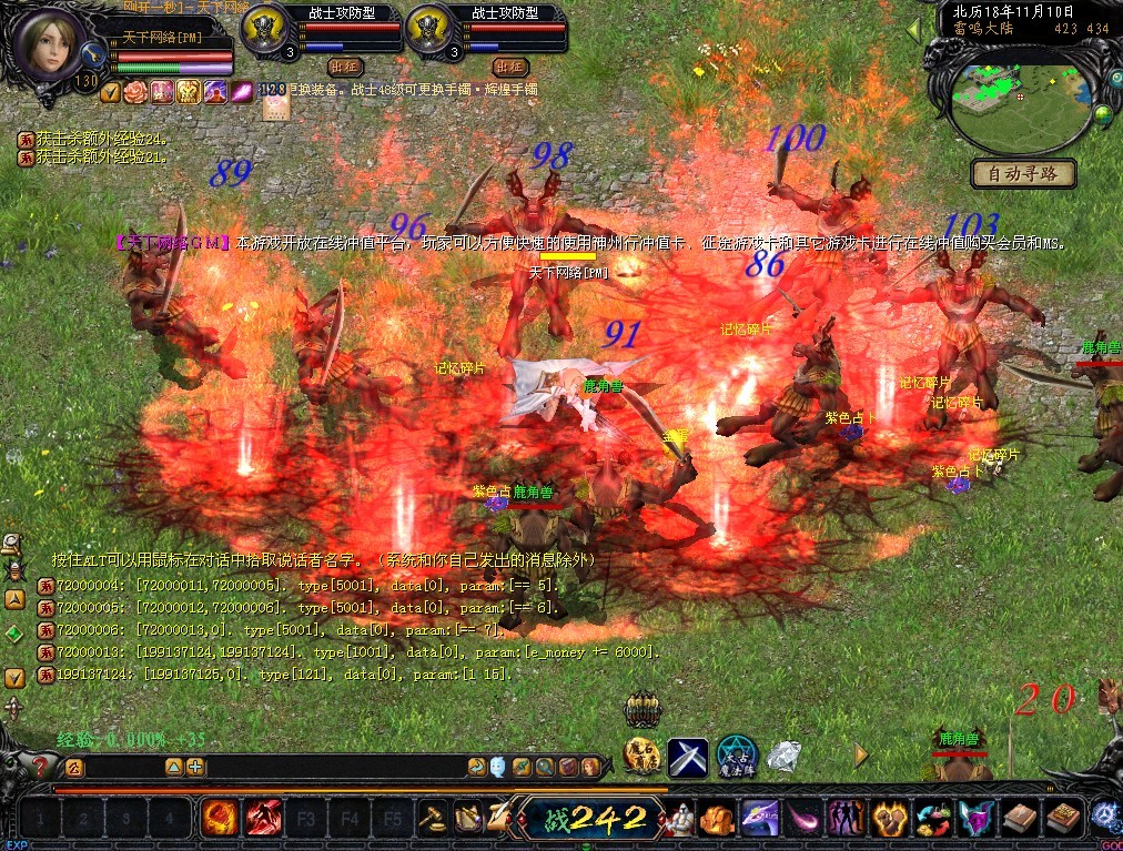 【游戏介绍】:本F可以说是只要在线时间长.不花钱你照样是老大.冲了钱的前期肯定优势大.官方都一样.但是他不可能一直冲钱.boss是一直掉魔石的.这就是给普通玩家的优势