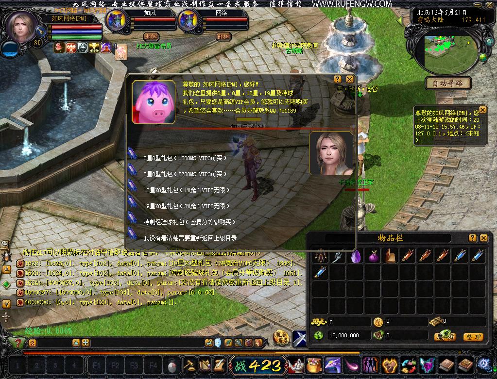 9.进一步调整随身NPC的功能,加入会员打宝,会员商店(可购买特球及6星,8星,12星,19星XO礼包),会员