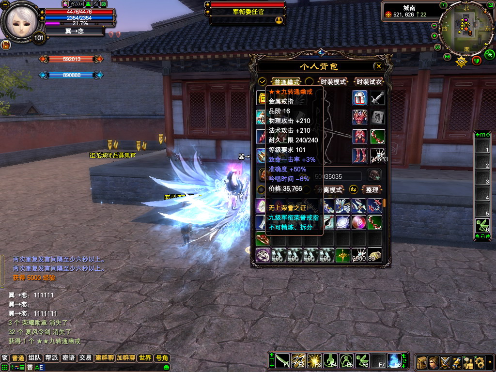 (九军装备任务要先完成九级军衔任务才能领,意思跟八军一样,只是八军是在地剑里领,我这改成万劫岛,军衔NPC领取,九军武器攻击比官方属性提升4倍,衣服还为原官方属性)