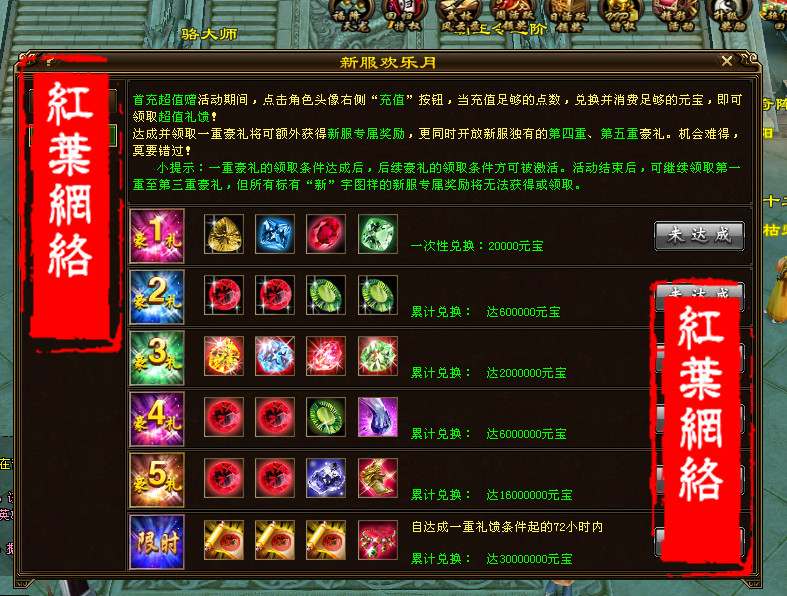 充值比例:1:1红叶点 1红叶点=20000元宝