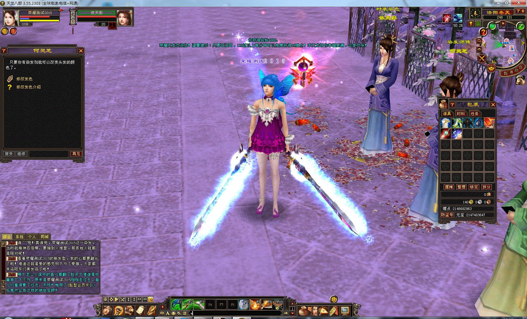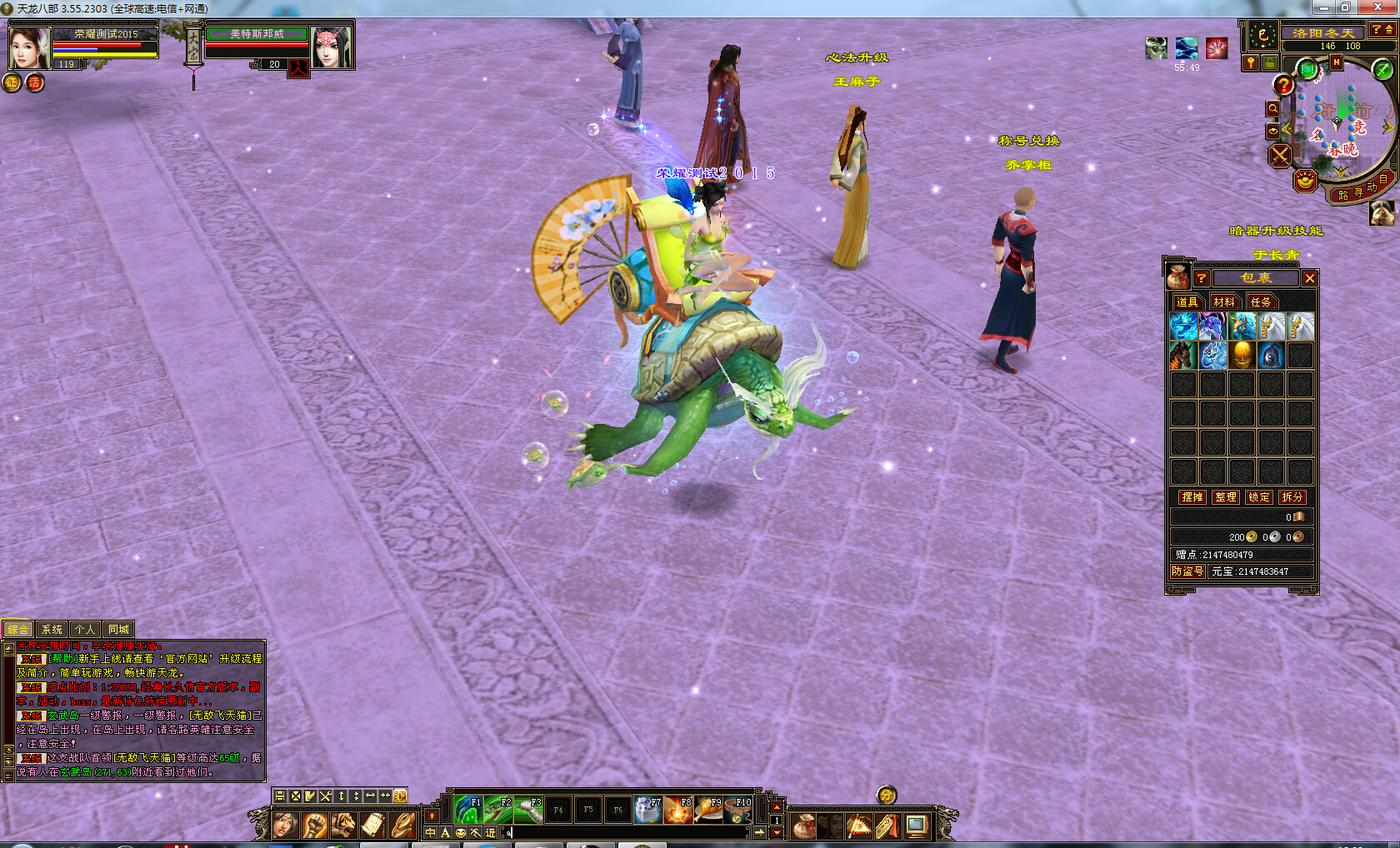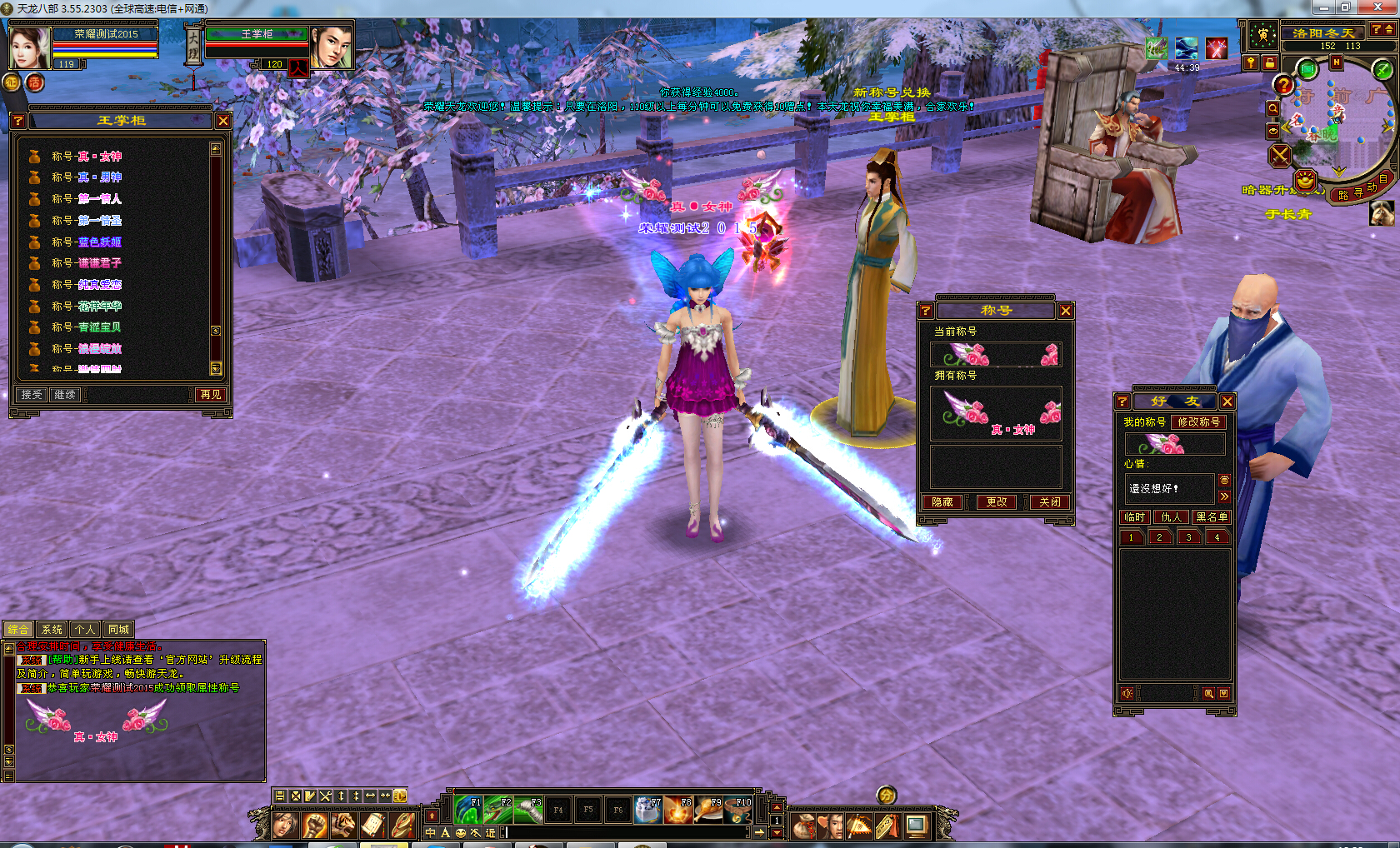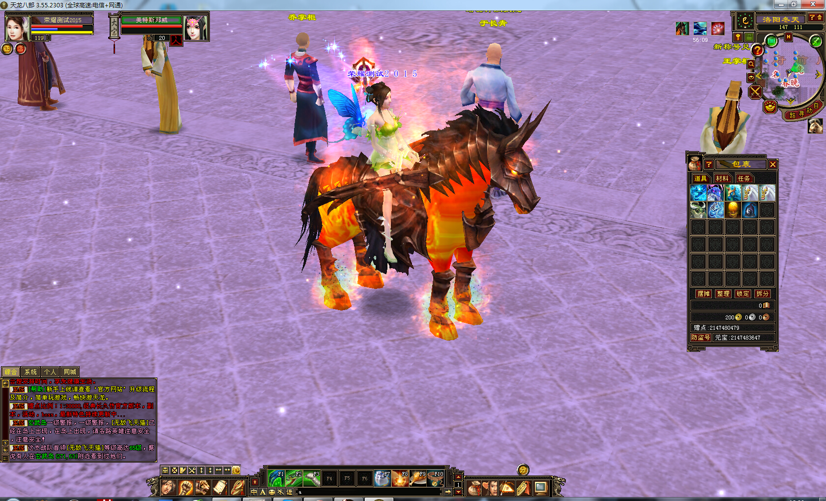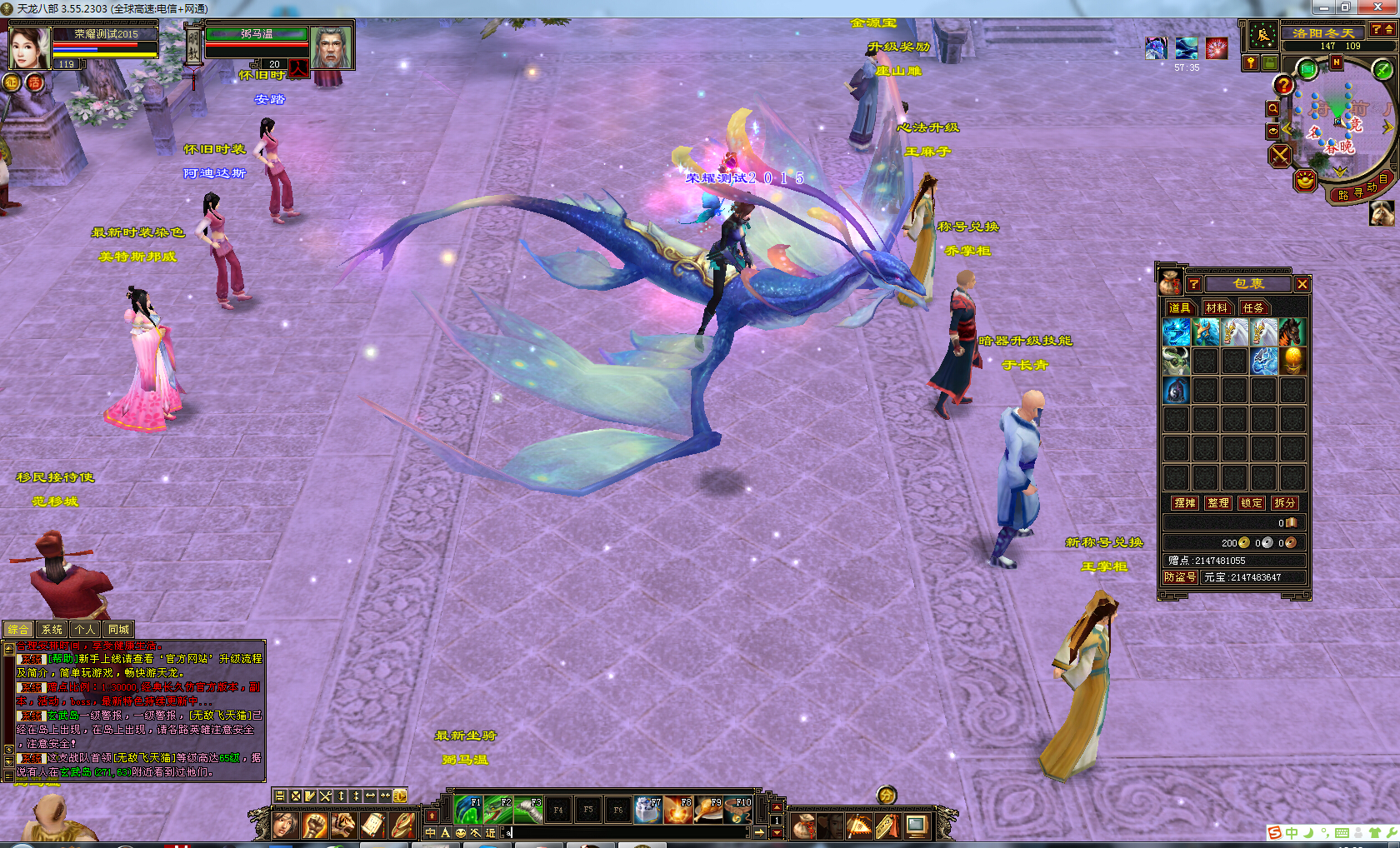 5.原端公告及上线全部显示荣耀天龙,有点小技术的都可以找到对应文件位置改为自己想改的,最新时装,坐骑,染色时装等等全部同步,客户端版本同步到3.55.2105,可以用截止目前最新客户端3.55.2303,如果官服再更新,不能保证端无错。