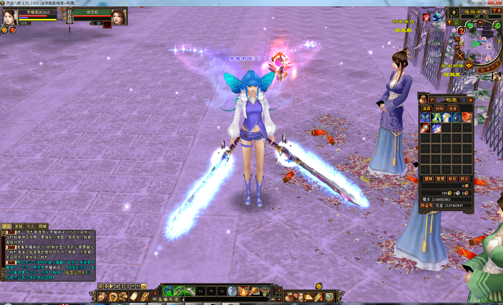 基于原端,修复若干小bug,装备栏加宽看着舒服点,修改大飘小飘及老三环爆率,商店调整,重排主城npc,加入新称号真·男神,真·女神,等等炫酷称号,加入若干npc待用。