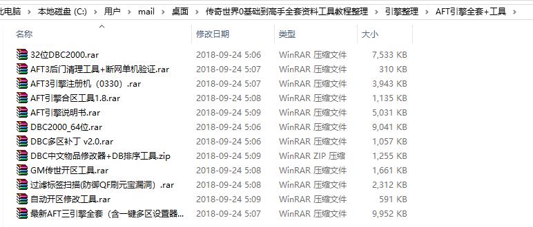 精心整理传奇世界大量资料,包括补丁、修改教程、工具、登录器、引擎、脚本、教学版本等等,具体请看截图。
