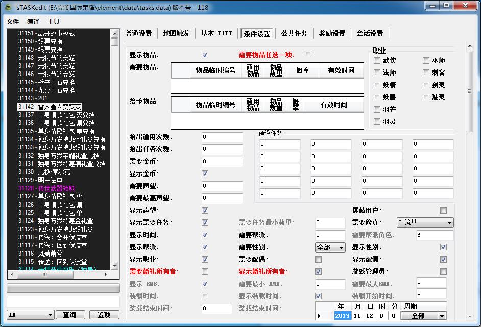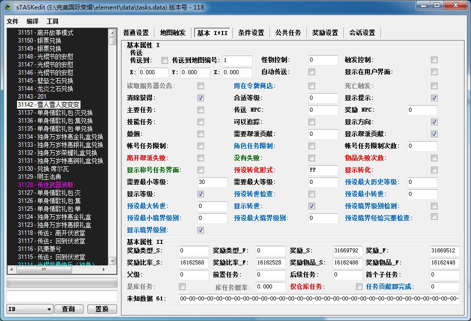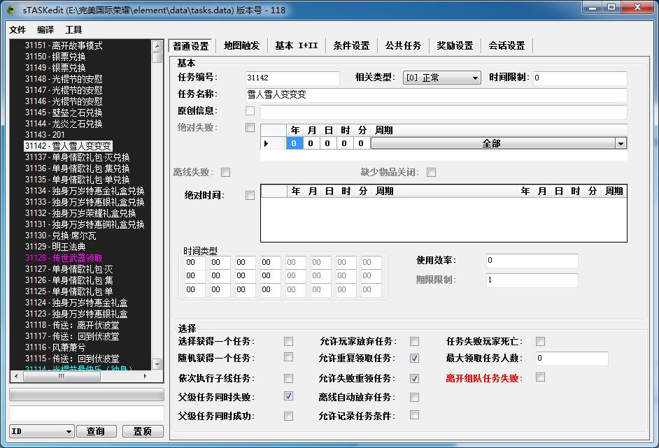 完美国际151版本修改任务所需的中文任务编辑器,可帮助你快速修改任务设置