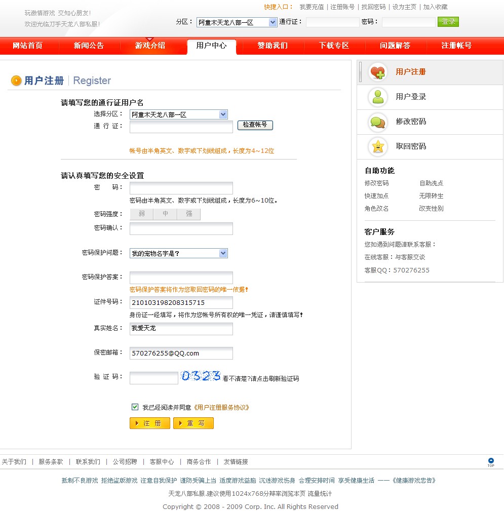 - 支持天龙八部四孔的网站注册和玩家后台 4862